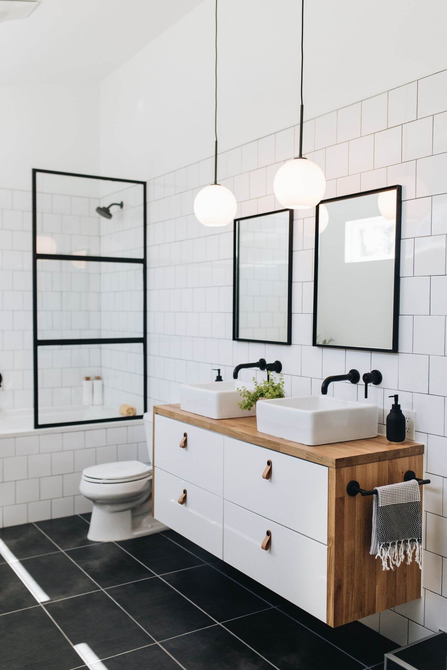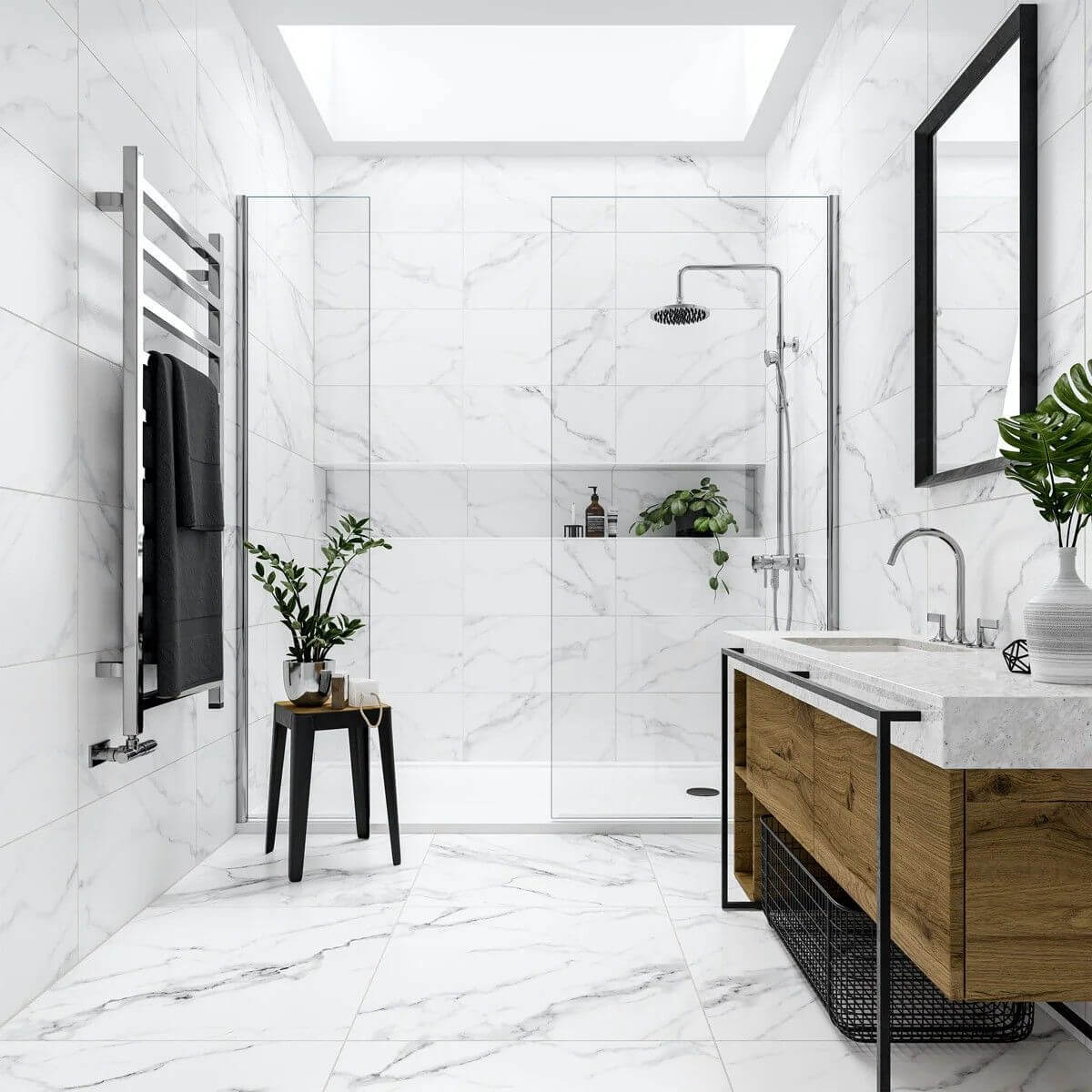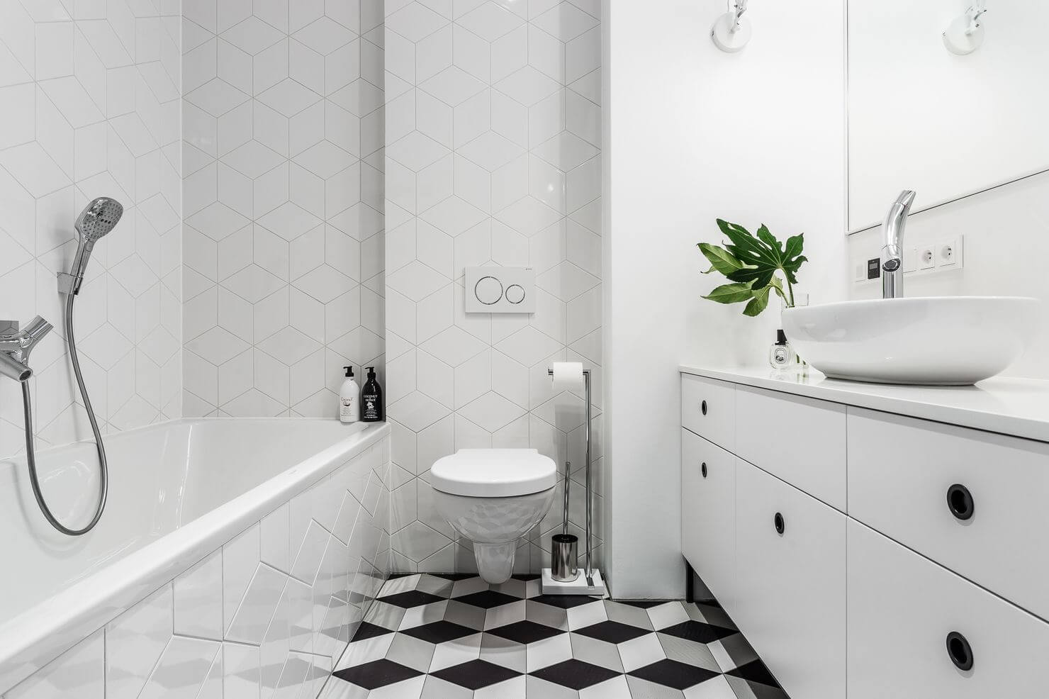 Белые ванные комнаты — это вечная классика, которая никогда не выйдет из моды. Белый цвет символизирует чистоту, легкость и свежесть, а потому идеально подходит для ванной. На его фоне эффектно смотрятся черная фурнитура, дерево, элементы из камня или металла, яркий текстиль и аксессуары. Это отличная база, которую можно дополнять или менять без капитального ремонта. Чтобы белая ванная не казалась слишком «стерильной», можно поиграть с различными фактурами и оттенками. Матовая и глянцевая плитка, мрамор, штукатурка, керамика и дерево — все это делает интерьер глубоким и интересным. Живые растения также помогут оживить белое пространство. Даже одно неприхотливое растение в стильном кашпо способно изменить атмосферу и сделать белую ванную более уютной. А если помимо основного света добавить подсветку пола, ниш, зон вокруг зеркала — с мягким, теплым рассеянным светом — получится по-настоящему комфортное пространство, где приятно начинать и заканчивать день. Собрали для вас 15 примеров белых ванных комнат из проектов дизайнеров со всего мира.