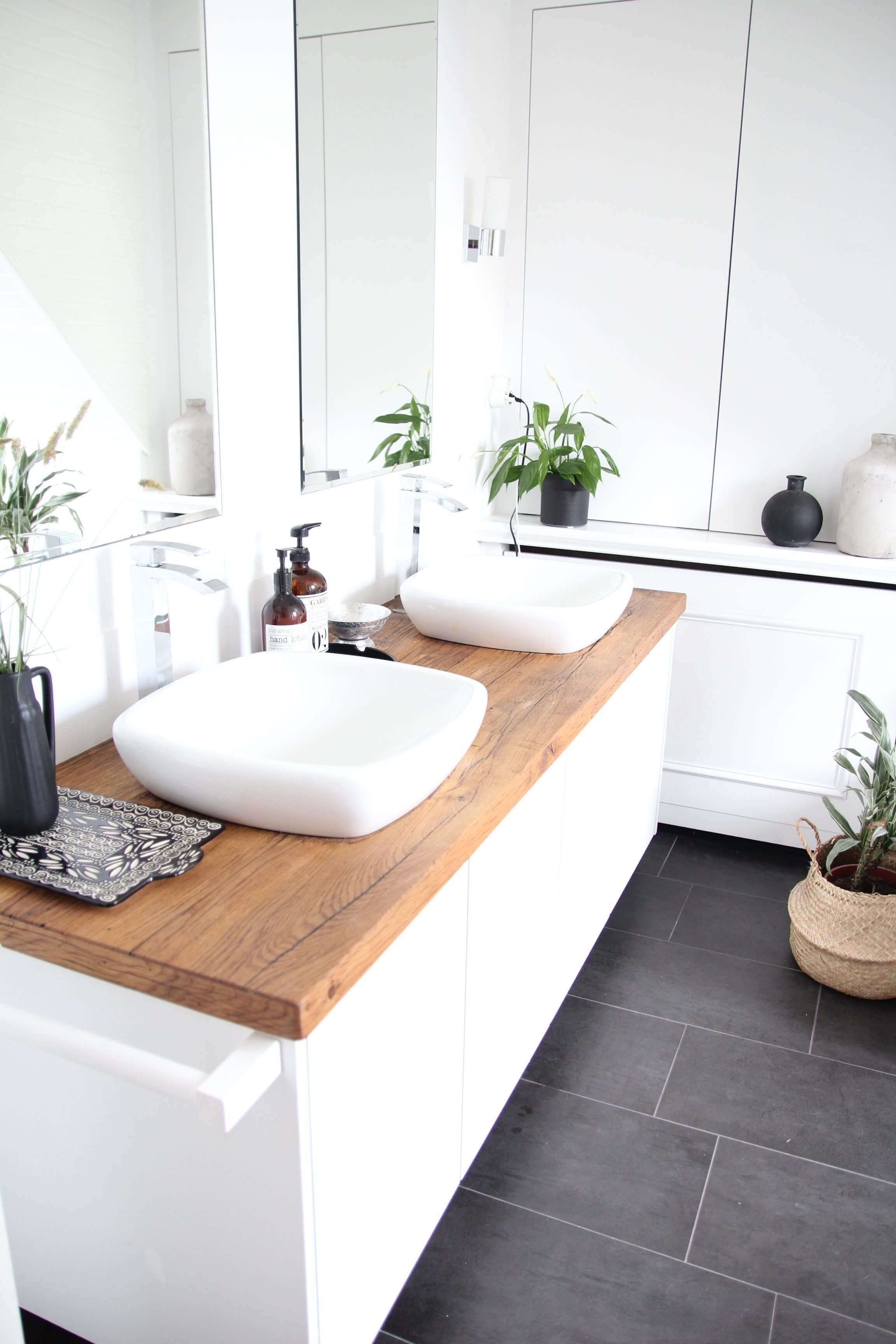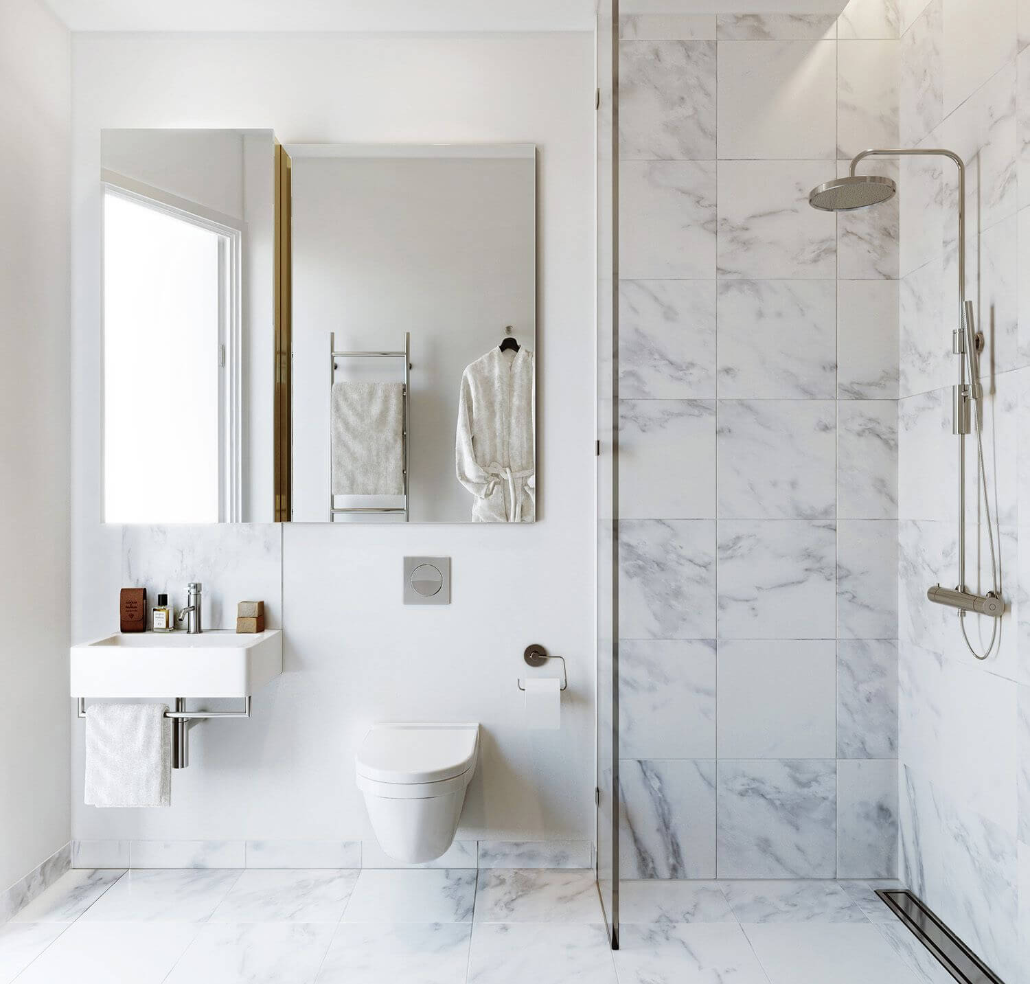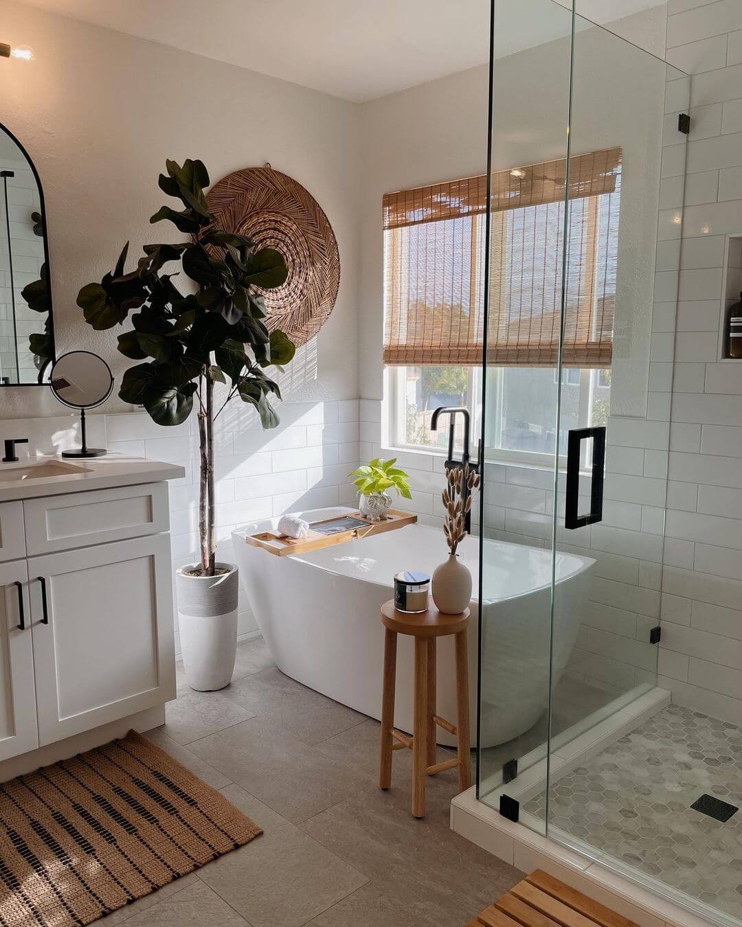 Белые ванные комнаты — это вечная классика, которая никогда не выйдет из моды. Белый цвет символизирует чистоту, легкость и свежесть, а потому идеально подходит для ванной. На его фоне эффектно смотрятся черная фурнитура, дерево, элементы из камня или металла, яркий текстиль и аксессуары. Это отличная база, которую можно дополнять или менять без капитального ремонта. Чтобы белая ванная не казалась слишком «стерильной», можно поиграть с различными фактурами и оттенками. Матовая и глянцевая плитка, мрамор, штукатурка, керамика и дерево — все это делает интерьер глубоким и интересным. Живые растения также помогут оживить белое пространство. Даже одно неприхотливое растение в стильном кашпо способно изменить атмосферу и сделать белую ванную более уютной. А если помимо основного света добавить подсветку пола, ниш, зон вокруг зеркала — с мягким, теплым рассеянным светом — получится по-настоящему комфортное пространство, где приятно начинать и заканчивать день. Собрали для вас 15 примеров белых ванных комнат из проектов дизайнеров со всего мира.
