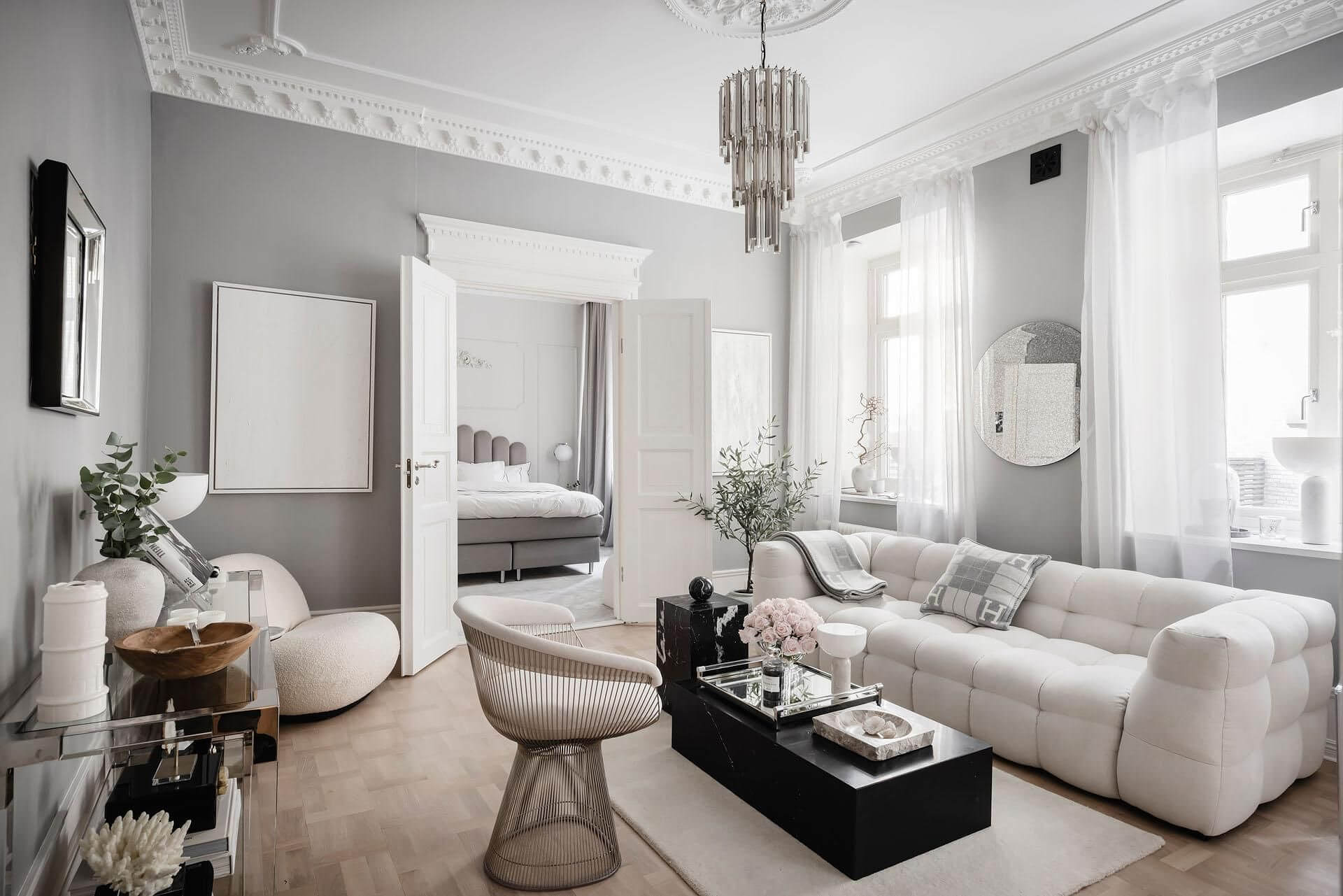Молдинги помогают сделать стены выразительными без лишнего декора. Они добавляют пространству глубины, объема и элегантности. Даже простая отделка с таким декором выглядит более сложной и продуманной, а значит — визуально более дорогой.