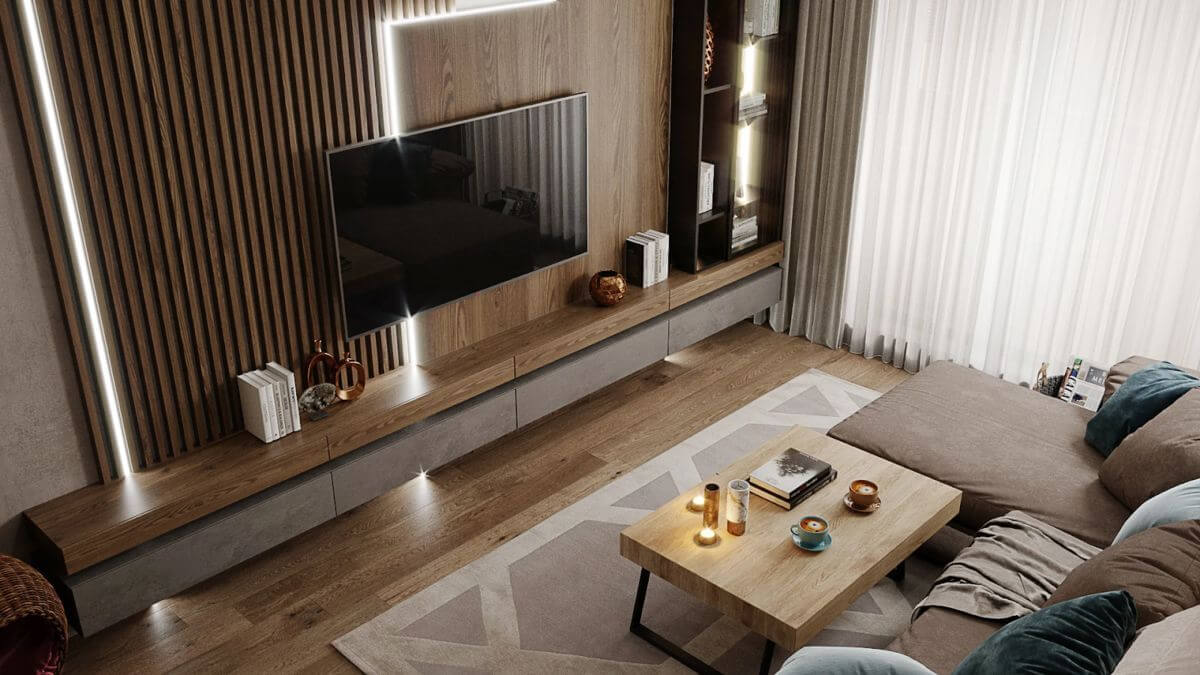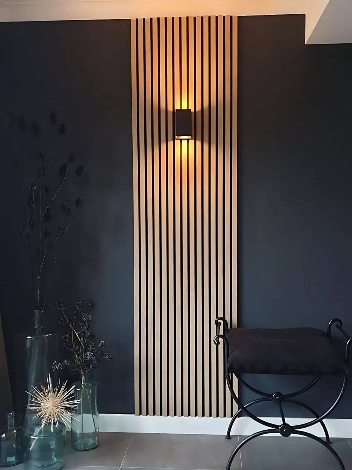 Декоративные рейки (они же — ламели или баффели) отличаются своей красотой и долговечностью. С их помощью можно создавать интересные акценты, визуально корректировать пропорции комнаты, скрывать недостатки стен и зонировать пространство. За рейками легко ухаживать, а при повреждении любого элемента конструкции — без труда заменить. Рейки лучше выбрать из лиственницы, сосны, ели.