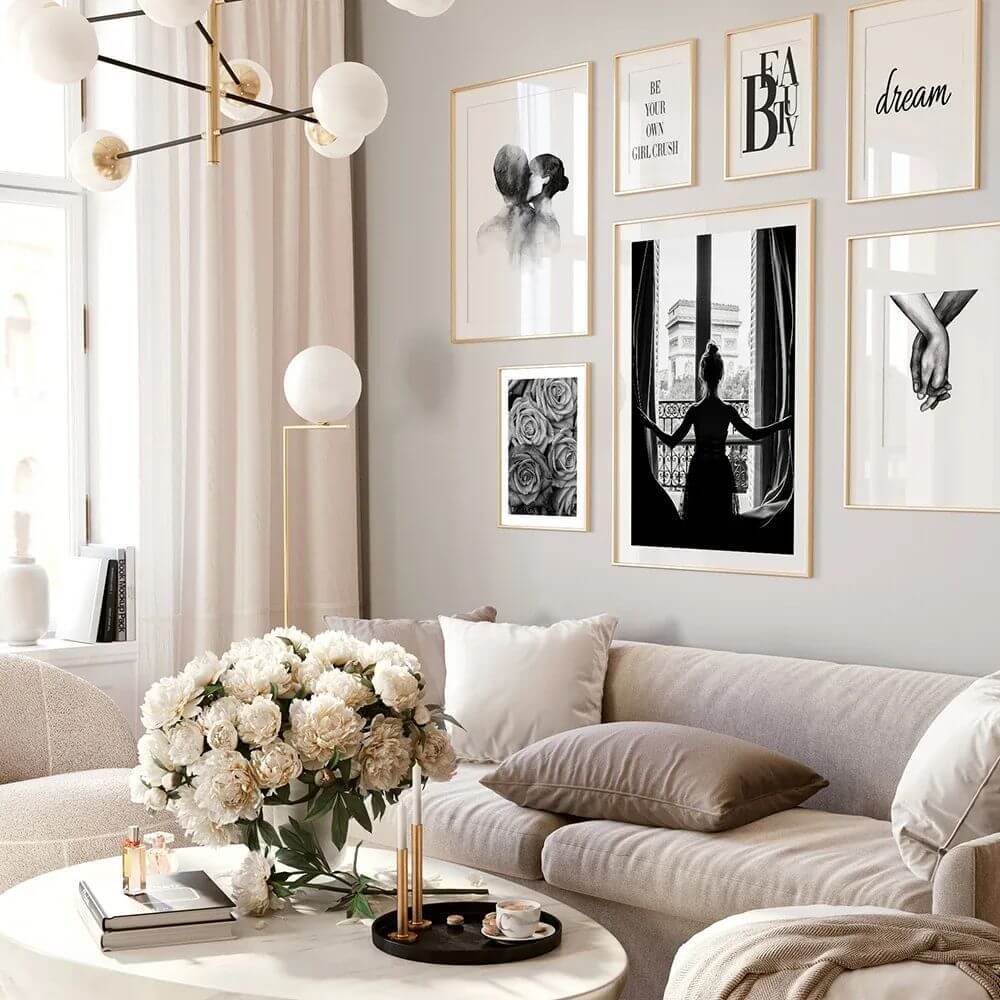 Если неровности локальные и незначительные, можно просто закрыть их картинами или постерами. К тому же, картины легко поменять, когда захочется быстро освежить интерьер и добавить в него что-то новое.