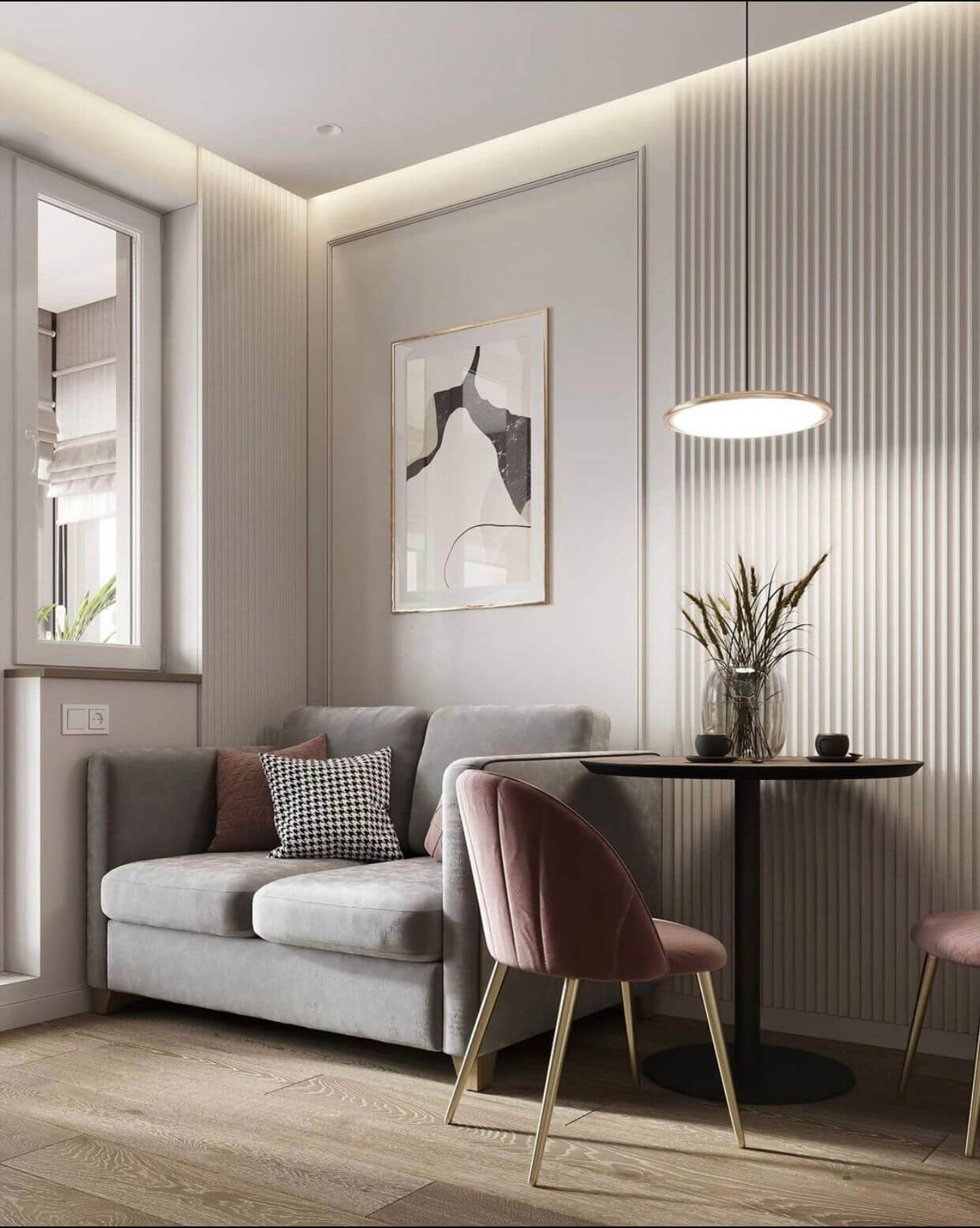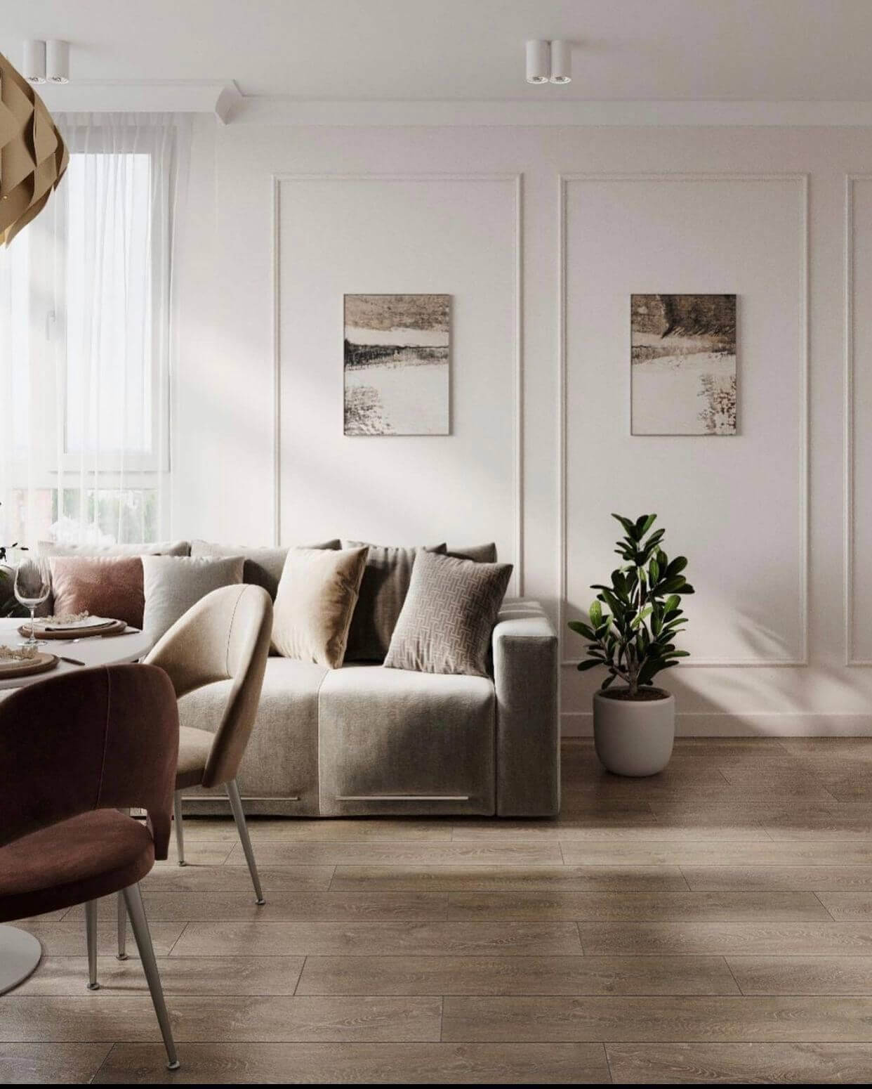 С помощью молдингов можно не только украсить интерьер или выделить определенную функциональную зону, но и аккуратно скрыть небольшие неровности стен. Особенно эффектно смотрятся молдинги, окрашенные в цвет стен: они помогают добавить интерьеру глубину и характер без лишнего декора.