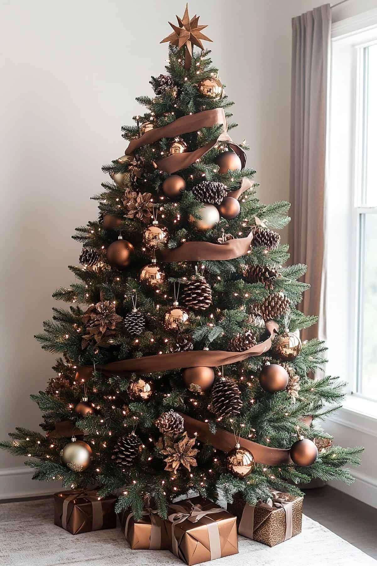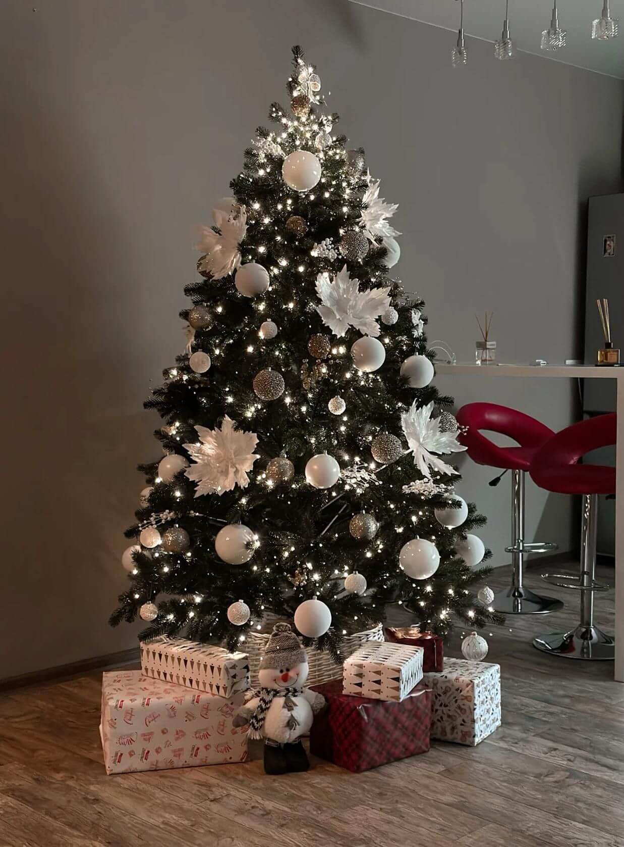Украшение ёлки — это не просто одна из задач предновогодних дел, это целый ритуал, который создаёт в доме ту самую волшебную атмосферу праздника. Любителям минималистичных решений, подойдёт ёлка, украшенная однотонными белыми, желтыми или красными шарами и тёплой светодиодной гирляндой — такой вариант идеально впишется в интерьер практически в любом стиле. Если хочется добавить винтажных нот, используйте ретро-игрушки, стеклянные фигурки и мишуру, как в детстве: лёгкий налёт ностальгии моментально оживит праздник. Для экологичного образа подойдут деревянные игрушки, шишки, сушёные фрукты и ленты из натуральных материалов — такая ёлка выглядит очень уютно и по-домашнему. Любителям ярких решений понравится многоцветная композиция: разноцветные шары, гирлянды с меняющимися режимами и необычные фигурки. Для семей с детьми прекрасно подойдет идея «сладкой» ёлочки: помимо игрушек, ветви украшают леденцами, пряничными человечками, мандаринами и конфетами в яркой обертке. Можно пойти еще дальше и выбрать тематический вариант: морскую ёлку с шарами-осьминогами и сетью вместо дождя, или космическую с планетами, летающими кораблями и сияющими звездами. Самое главное — не бояться экспериментировать: подойдет любая идея, главное вложить в неё немного фантазии и праздничного настроения. Собрали 15 красивых идей, которые помогут сделать новогоднюю ёлку незабываемой. Смотрите и вдохновляйтесь!
