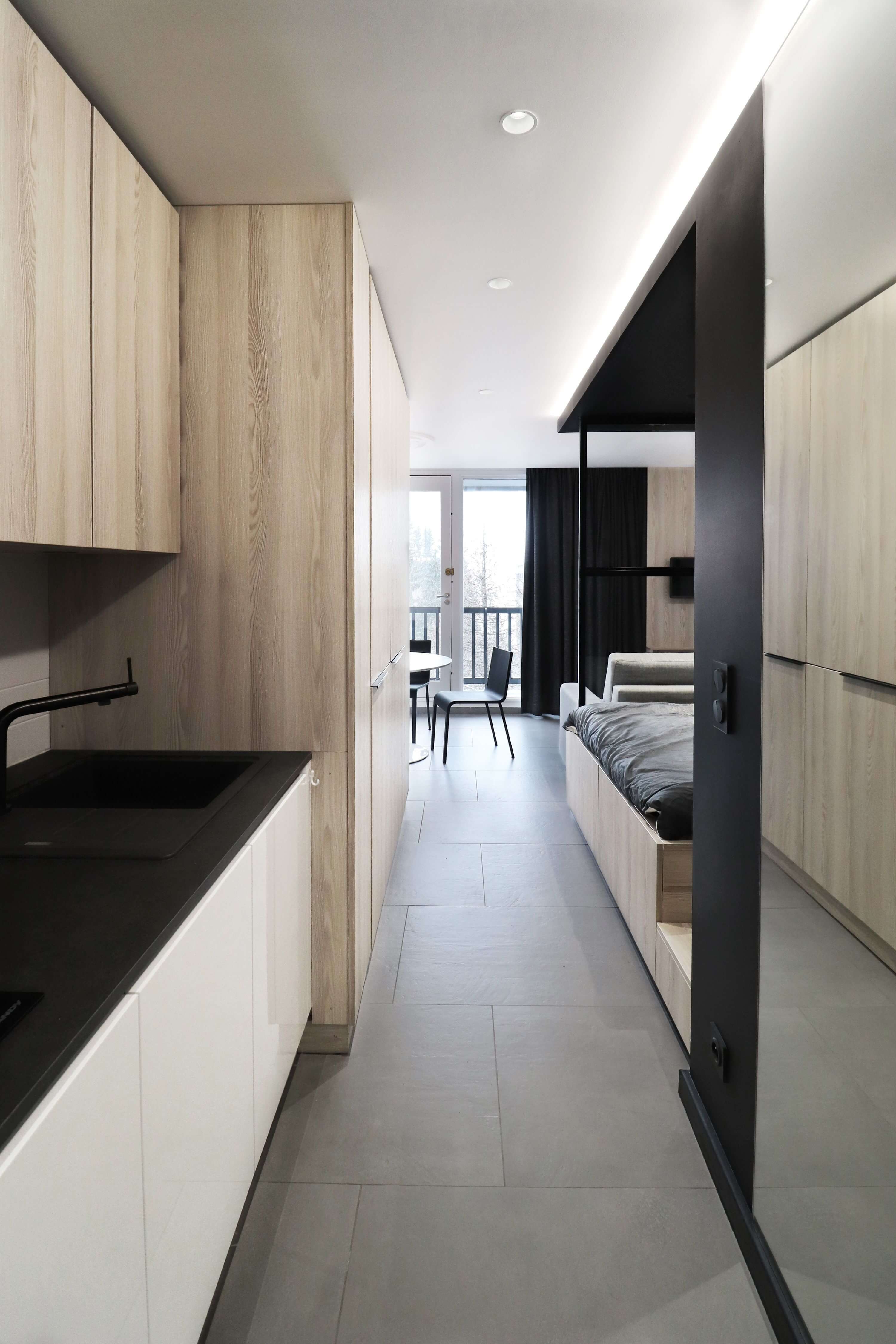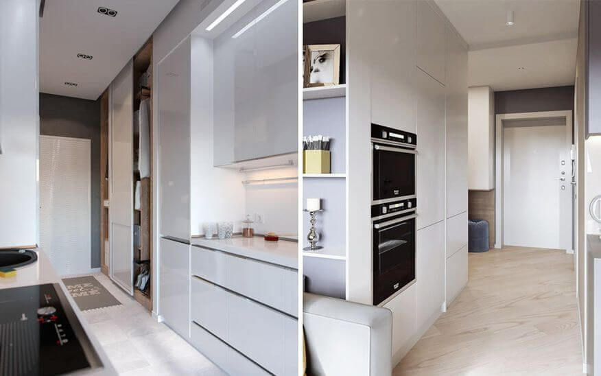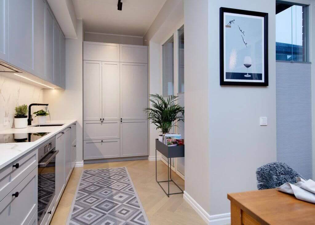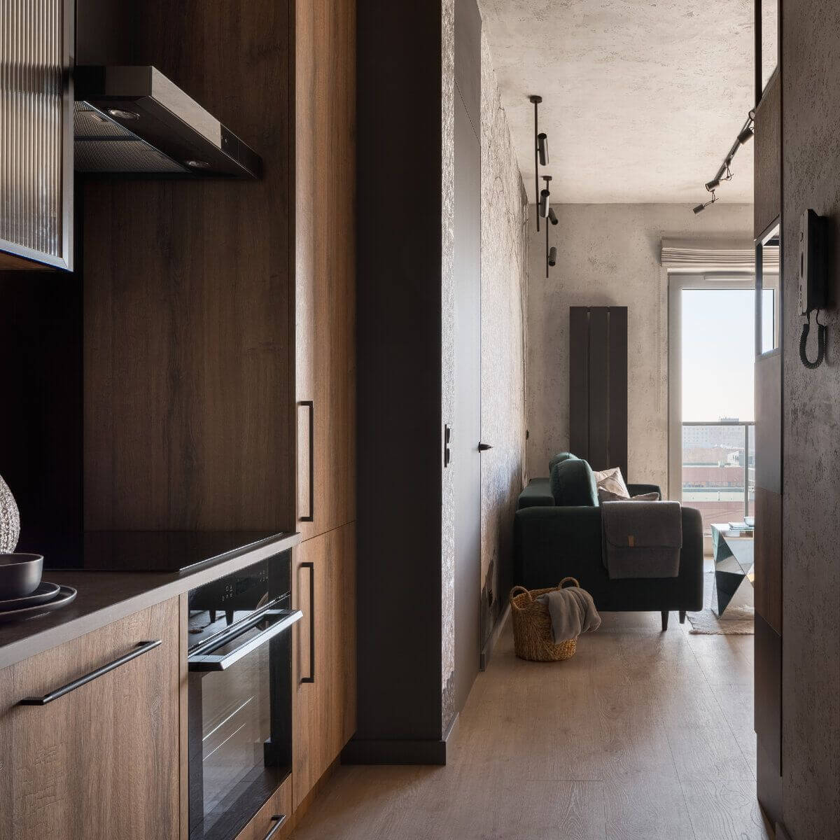 Кухня в коридоре — хорошее решение для небольших квартир, где хочется освободить комнату под спальню, кабинет или детскую. Современные кухни легко адаптируются под узкие и вытянутые пространства: линейная планировка, компактные модули, встроенная техника и системы хранения до потолка позволяют разместить всё необходимое даже на ограниченной площади. Однако у этого решения есть и свои нюансы. Перенос кухни требует согласования. Также понадобится хорошая вытяжка — без неё запахи быстро распространятся по всей квартире. Отдельного внимания заслуживает освещение. Коридоры нередко лишены естественного света, поэтому важно продумать многоуровневые световые сценарии: общее освещение, подсветку рабочей зоны и декоративный свет. Всё это способствует зрительному расширению пространства и создает ощущение уюта.