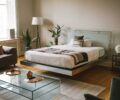 Оформляя внутреннее пространство, дизайнеры исходили из того, что панорамный вид здесь — главное, поэтому за основу всего интерьера была взята фанера, которая усиливает атмосферу спокойствия и умиротворения. Из нее сделаны встроенные системы хранения, кухня, столы и кровать.