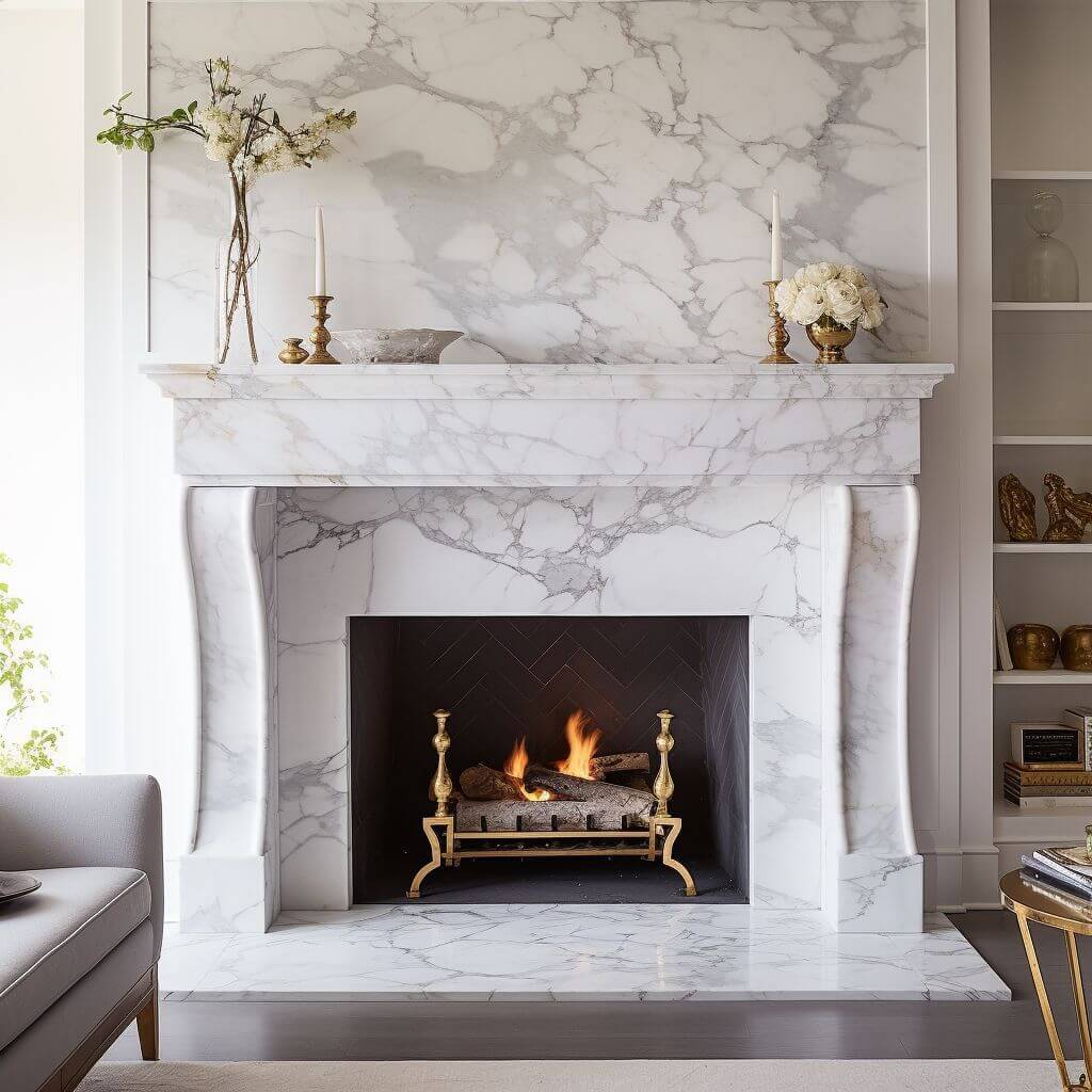 Камин — это символ домашнего уюта, комфорта и тепла. Благодаря выразительной и благородной текстуре мрамора, даже самый лаконичный портал будет выглядеть дорого и стильно. Мрамор способен выдерживать высокие температуры и со временем не теряет свой привлекательный внешний вид, что делает его идеальным материалом для облицовки как дровяных, так и электрических каминов.