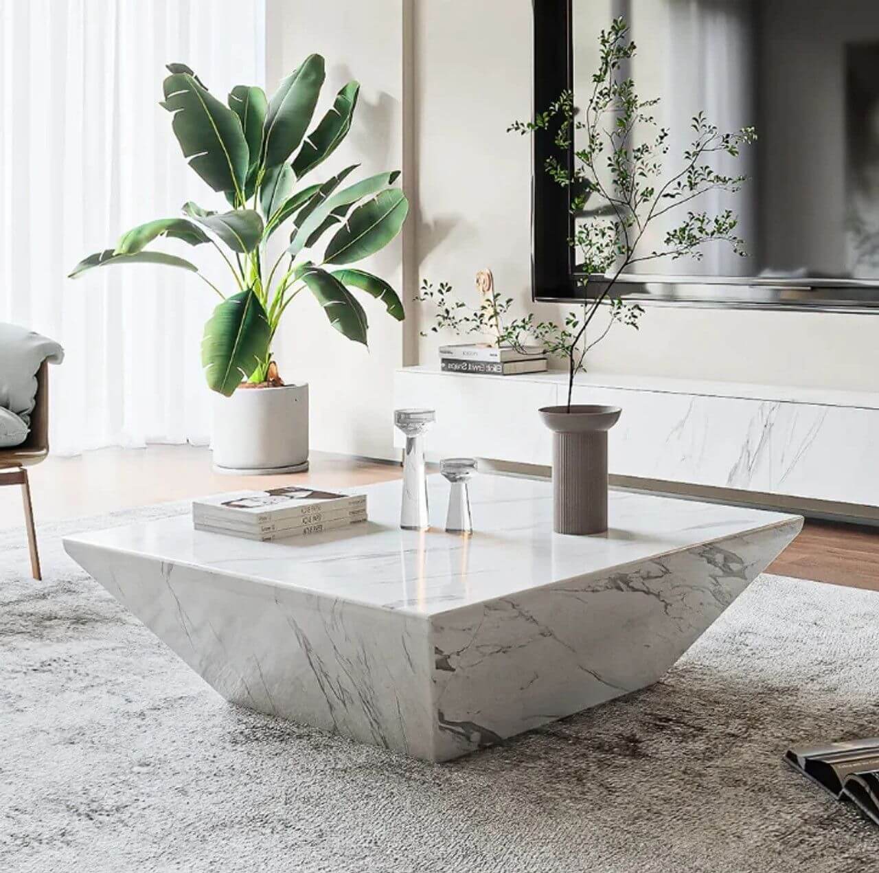 Журнальный столик или прикроватная тумба с мраморной столешницей может быть единственным элементом из камня в интерьере комнаты. Самодостаточный предмет мебели способен полностью преобразить помещение, придав ему респектабельный вид.
