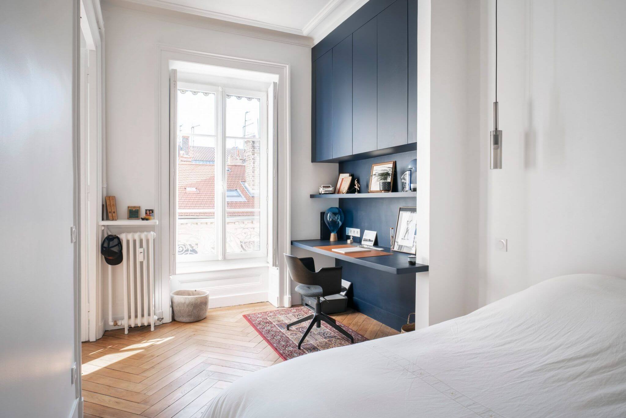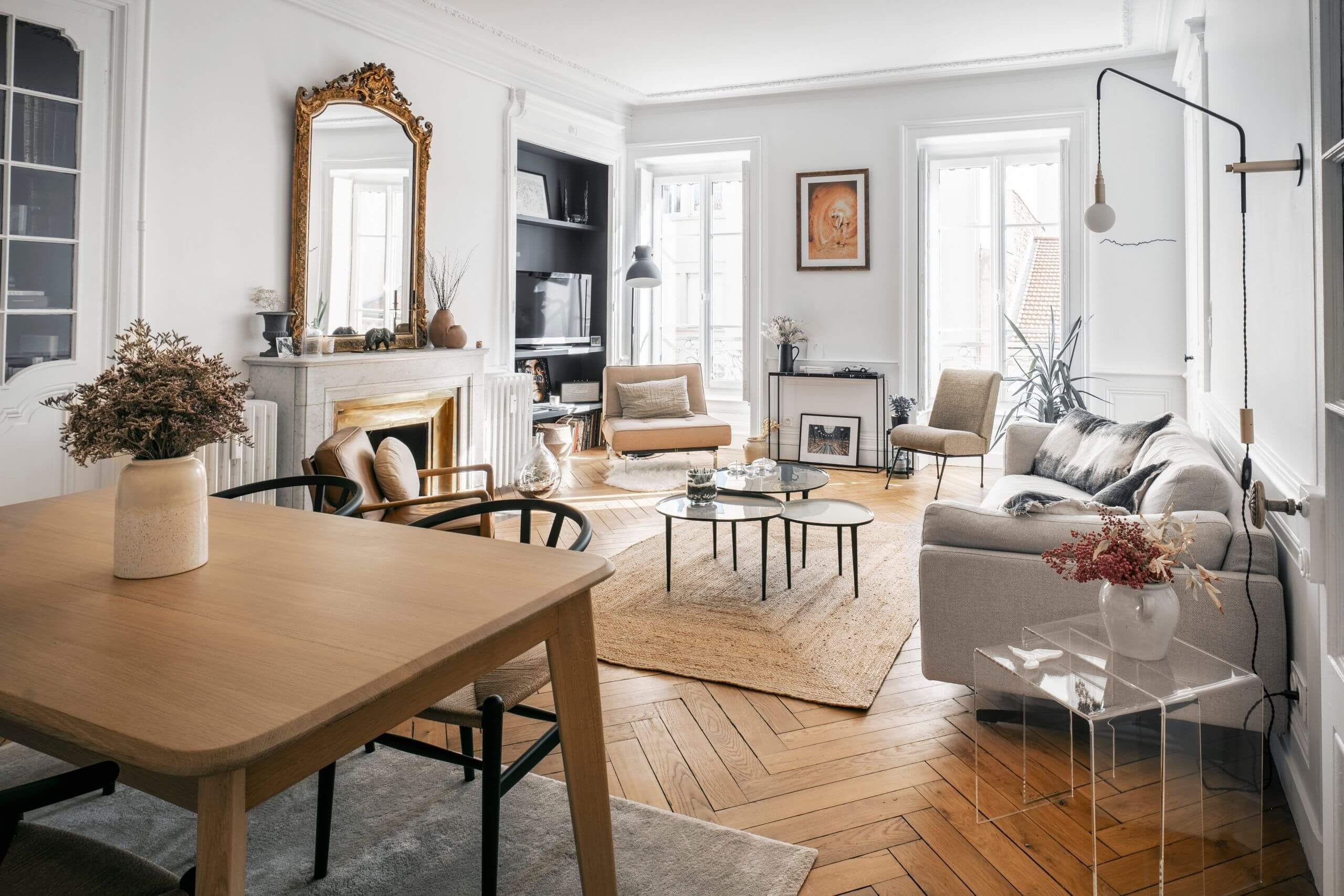 Сотни квартир в Лионе могут похвастаться сохранившимися архитектурными деталями: мраморным каминным порталом, лепниной и оригинальным паркетом «елочкой». И эта стала не исключением.