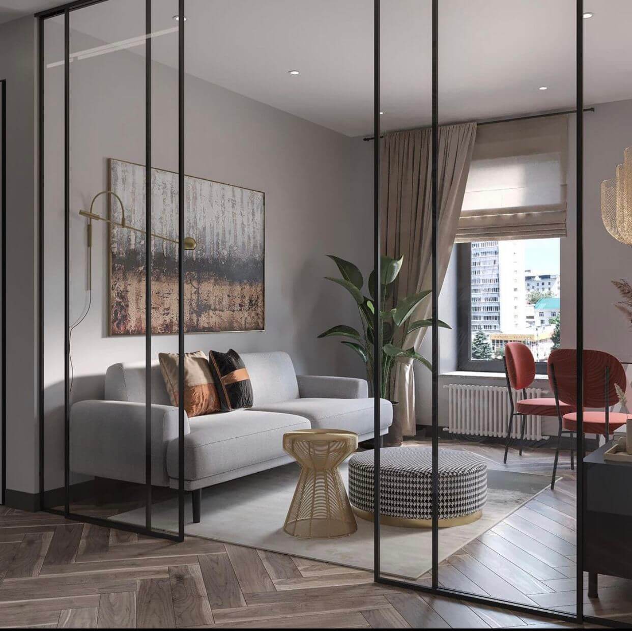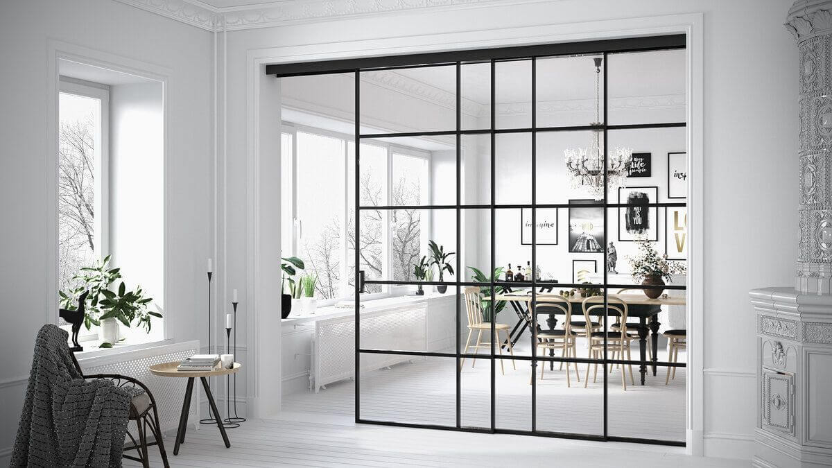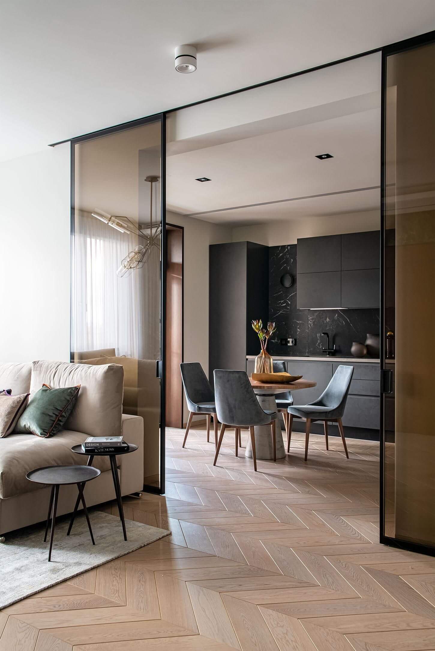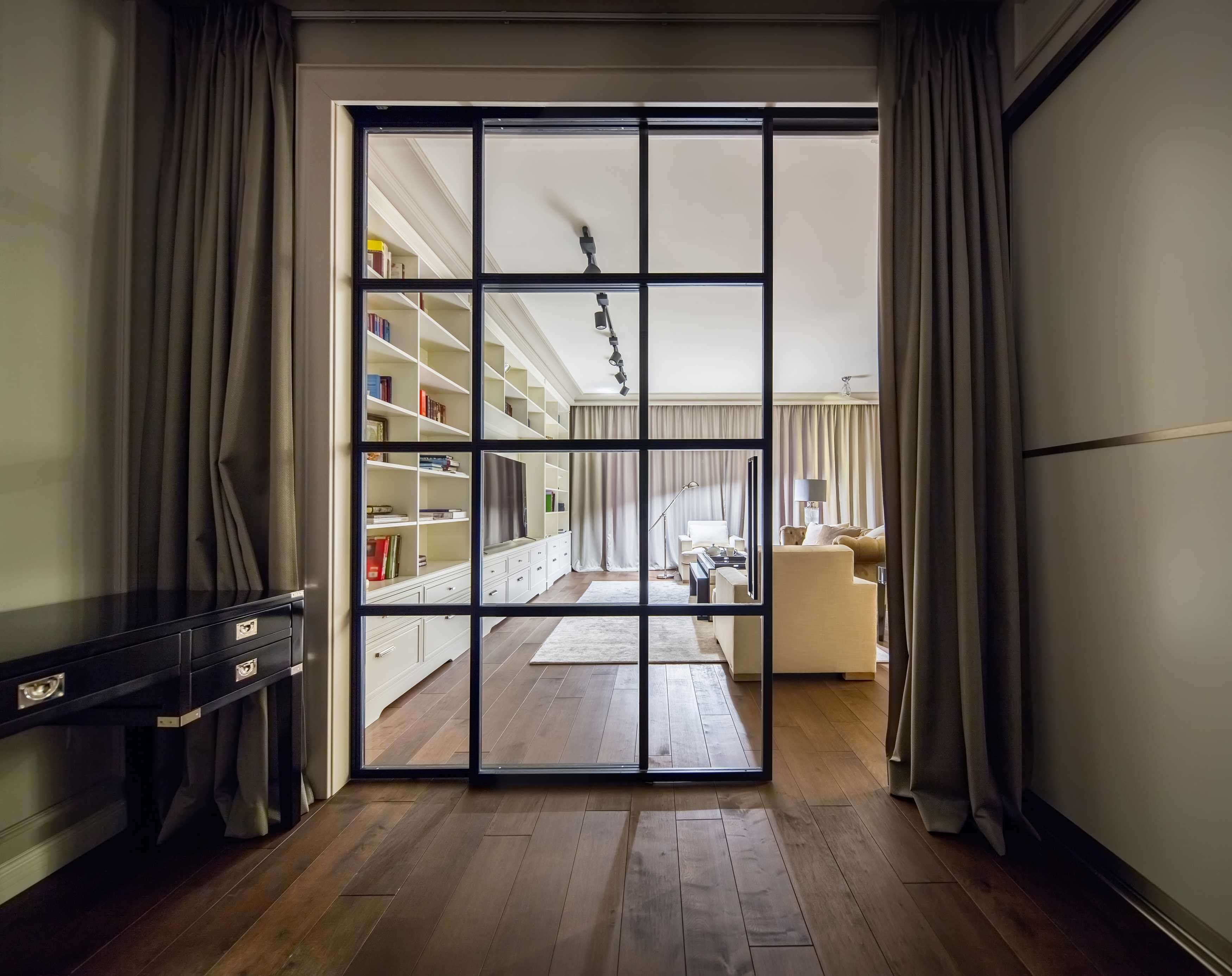 Раздвижные стеклянные перегородки в гостиной: 15 примеров