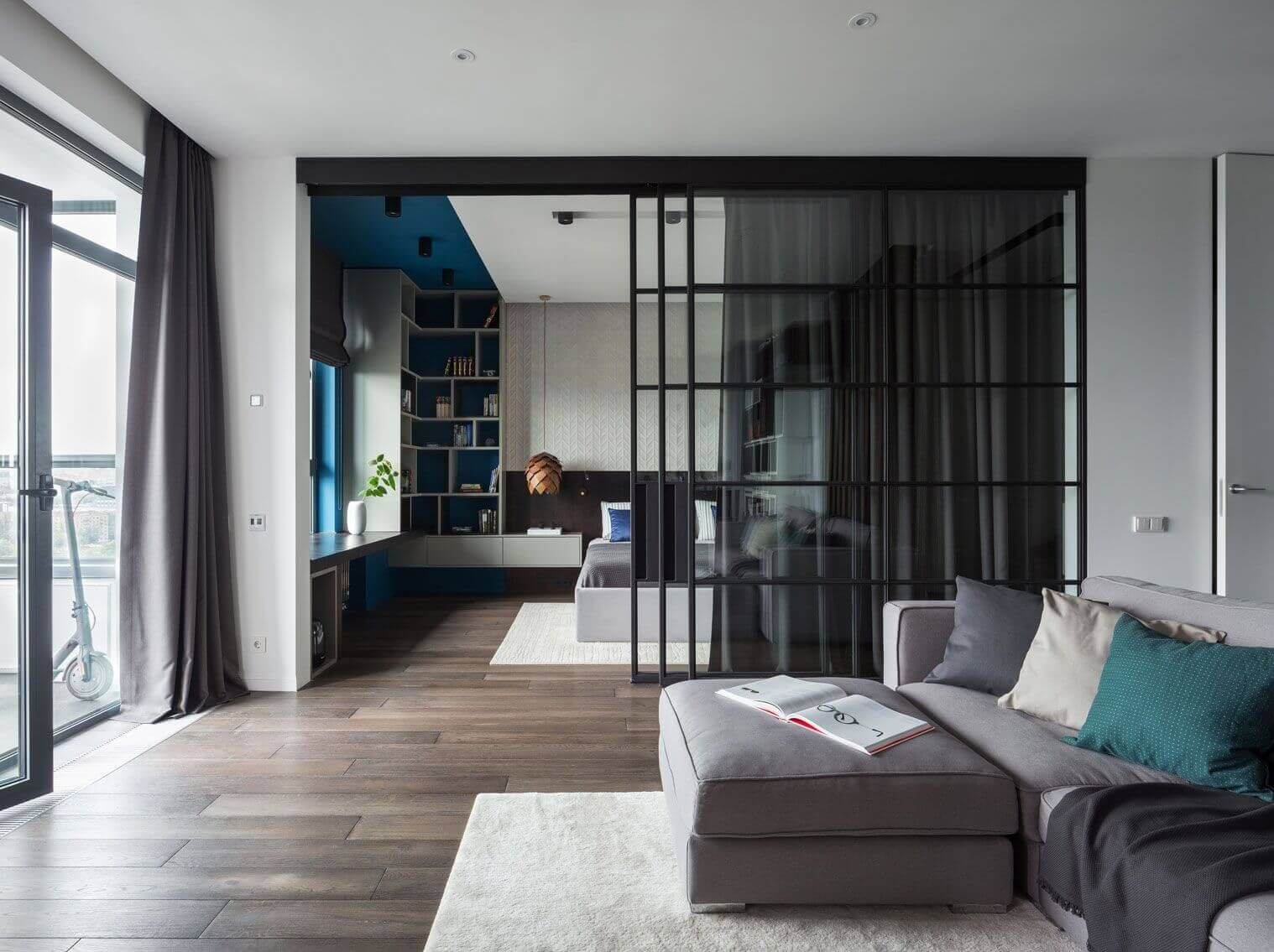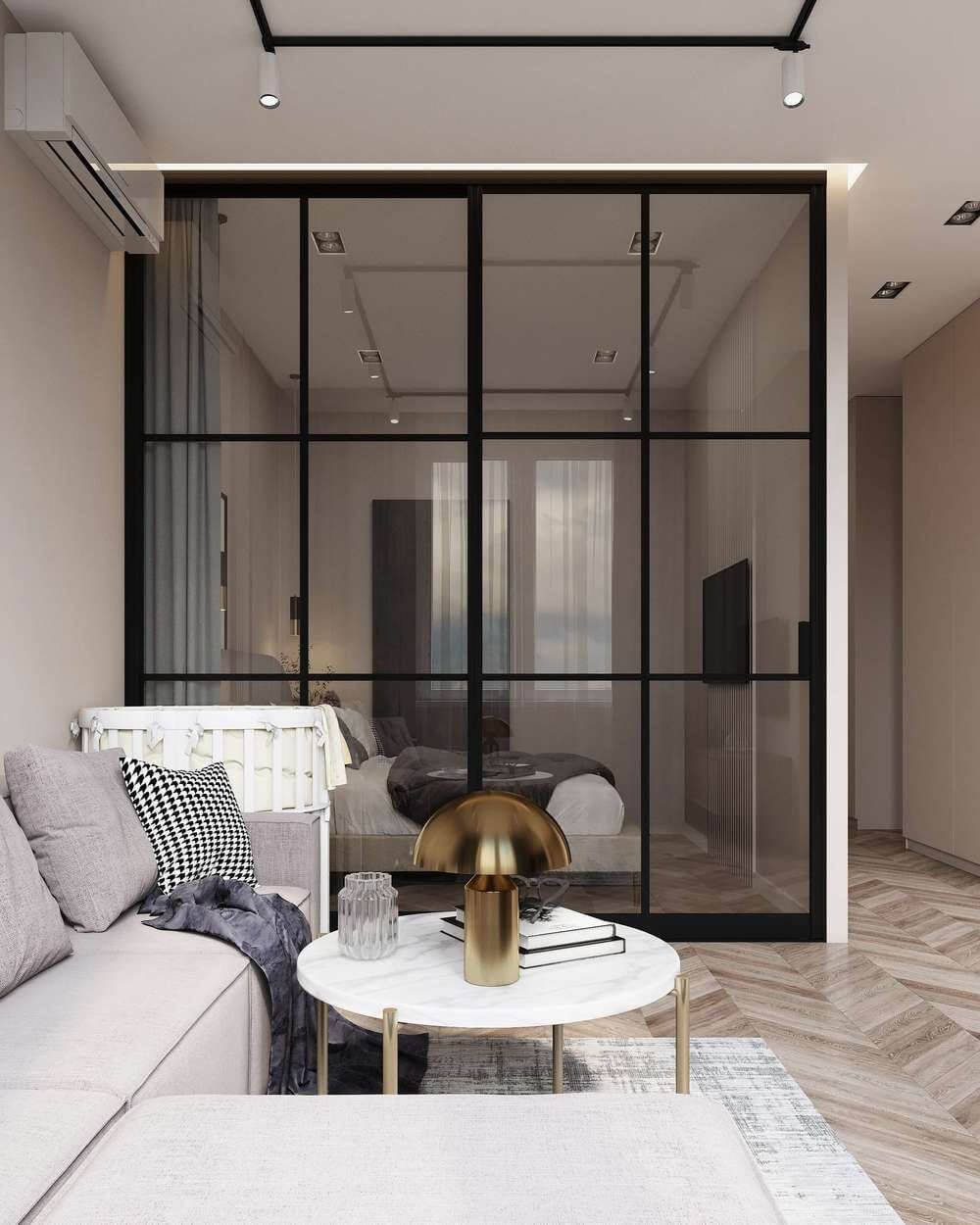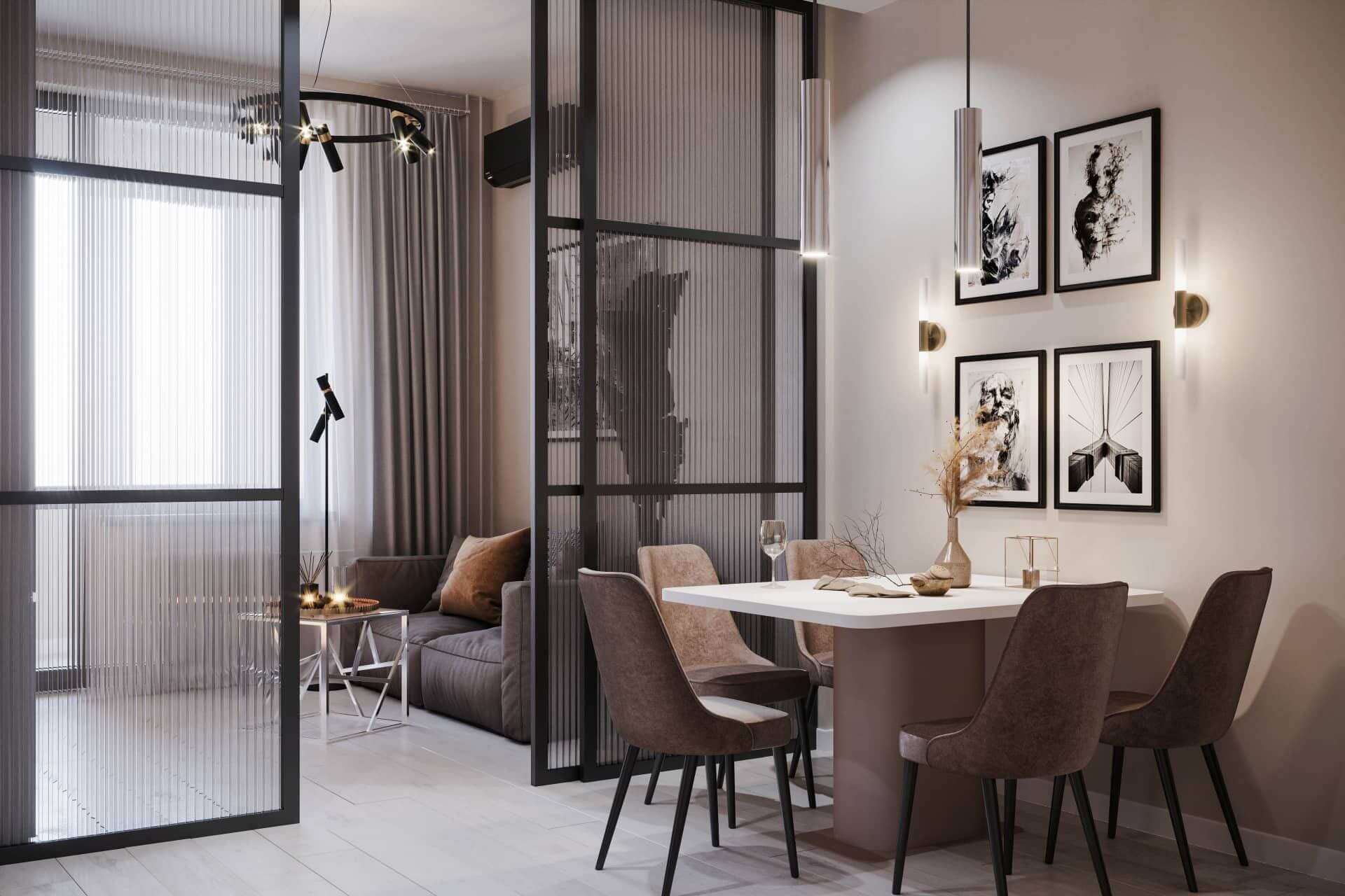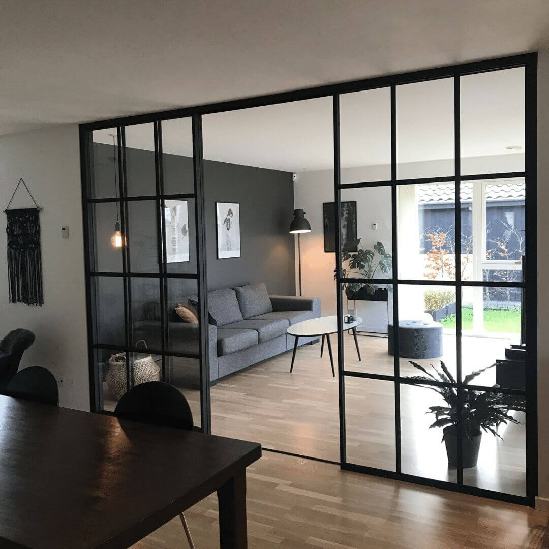 Раздвижные стеклянные перегородки в гостиной: 15 примеров
