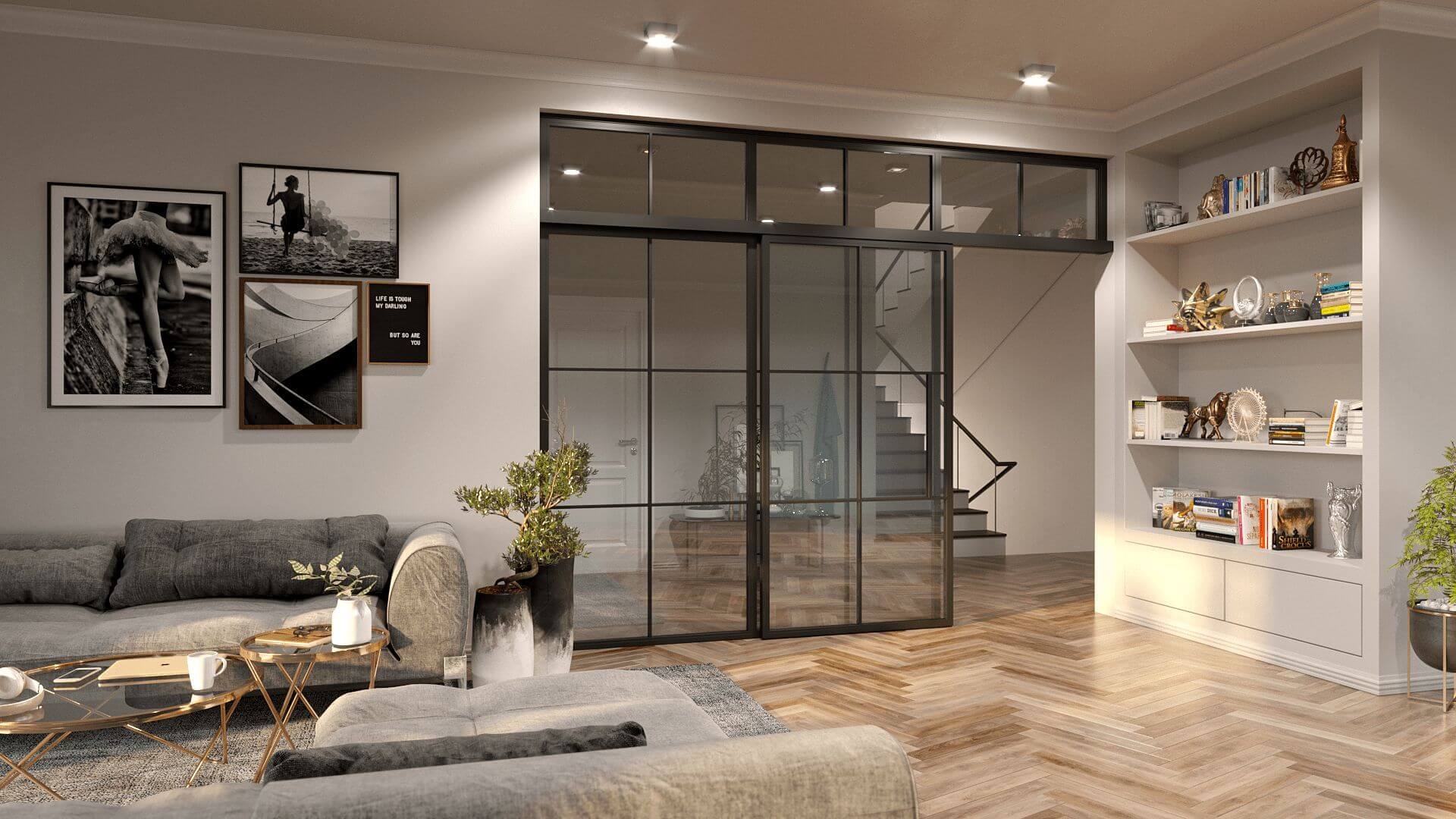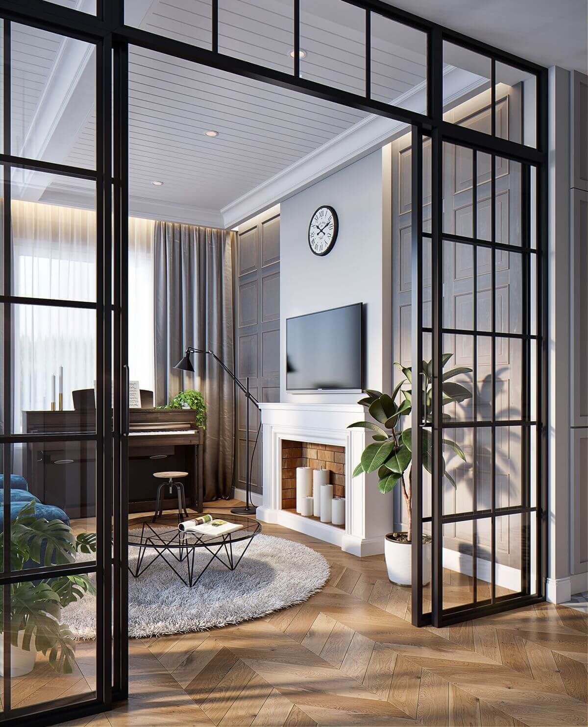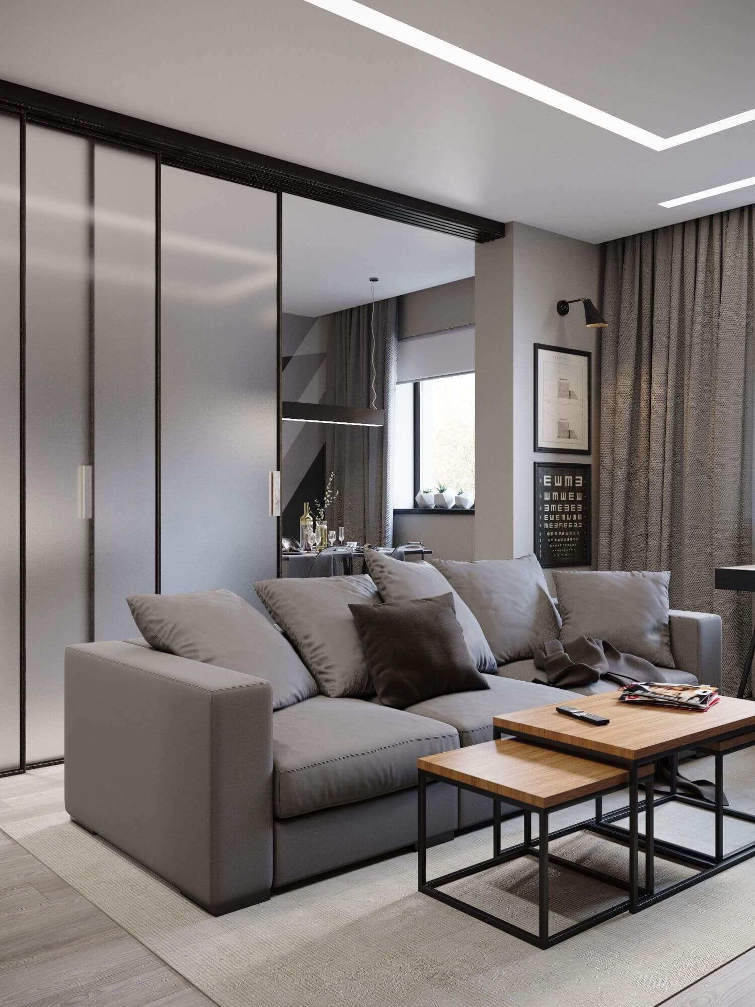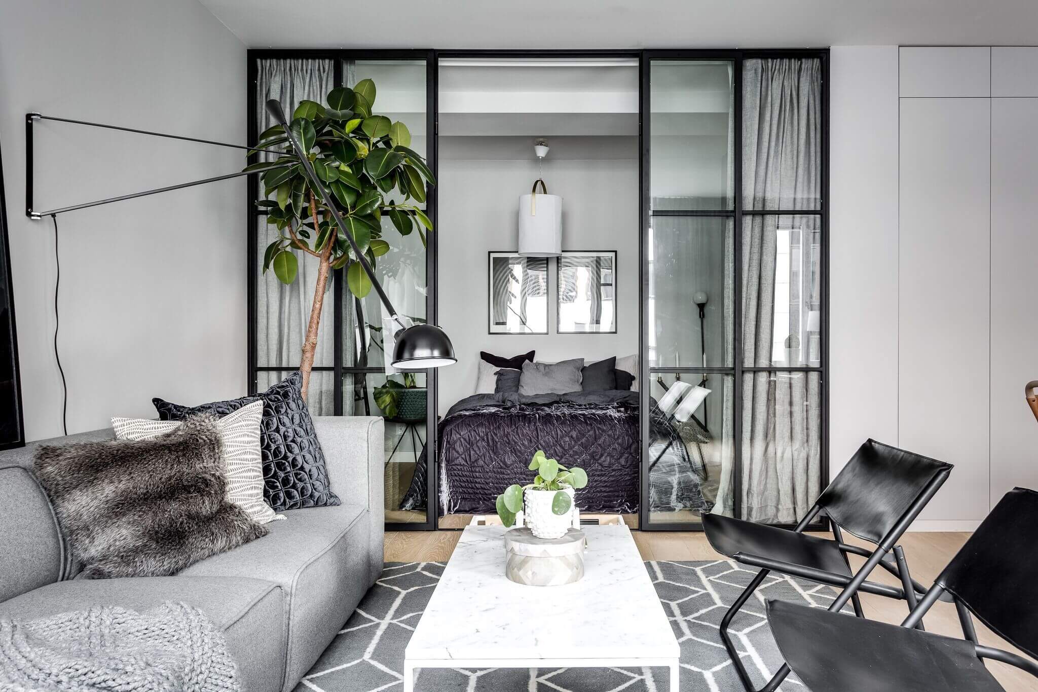 Раздвижные стеклянные перегородки в гостиной: 15 примеров