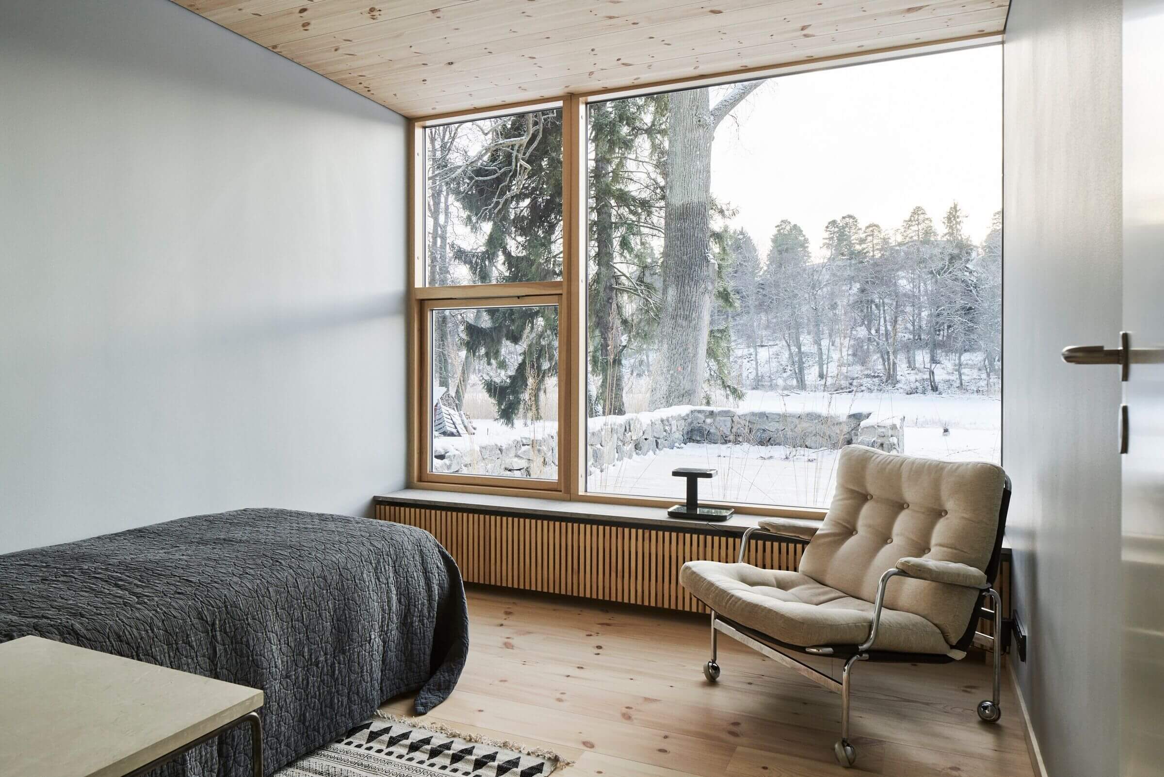 Сегодня панорамное остекление квартир и загородных домов набирает все большую популярность. «Окна в пол» стирают видимые границы между интерьером и улицей, наполняя спальню светом и воздухом. В таком пространстве даже самый лаконичный и сдержанный интерьер заиграет новыми красками, ведь главным украшением становится постоянно меняющийся пейзаж за окном. Мебель в спальне с панорамными окнами часто выбирают минималистичную и низкую, чтобы ничто не мешало взгляду устремляться вдаль. Также у панорамного окна часто делают небольшую зону отдыха. Это идеальное место, чтобы просто посидеть с чашечкой чая и насладиться красивыми рассветами и закатами. Собрали для вас подборку из 15 спален с панорамными окнами из проектов дизайнеров со всего мира. Смотрите и вдохновляйтесь!
