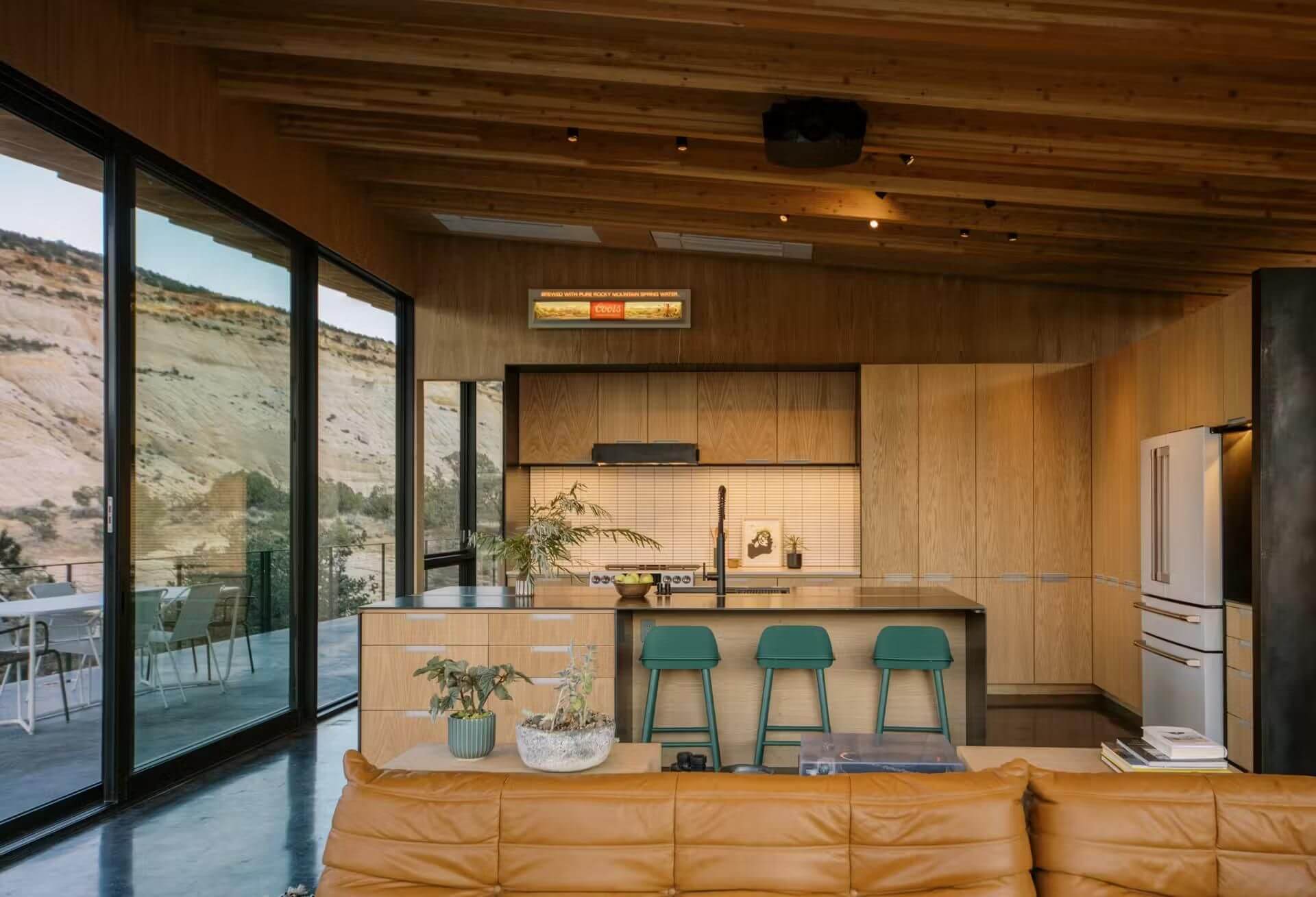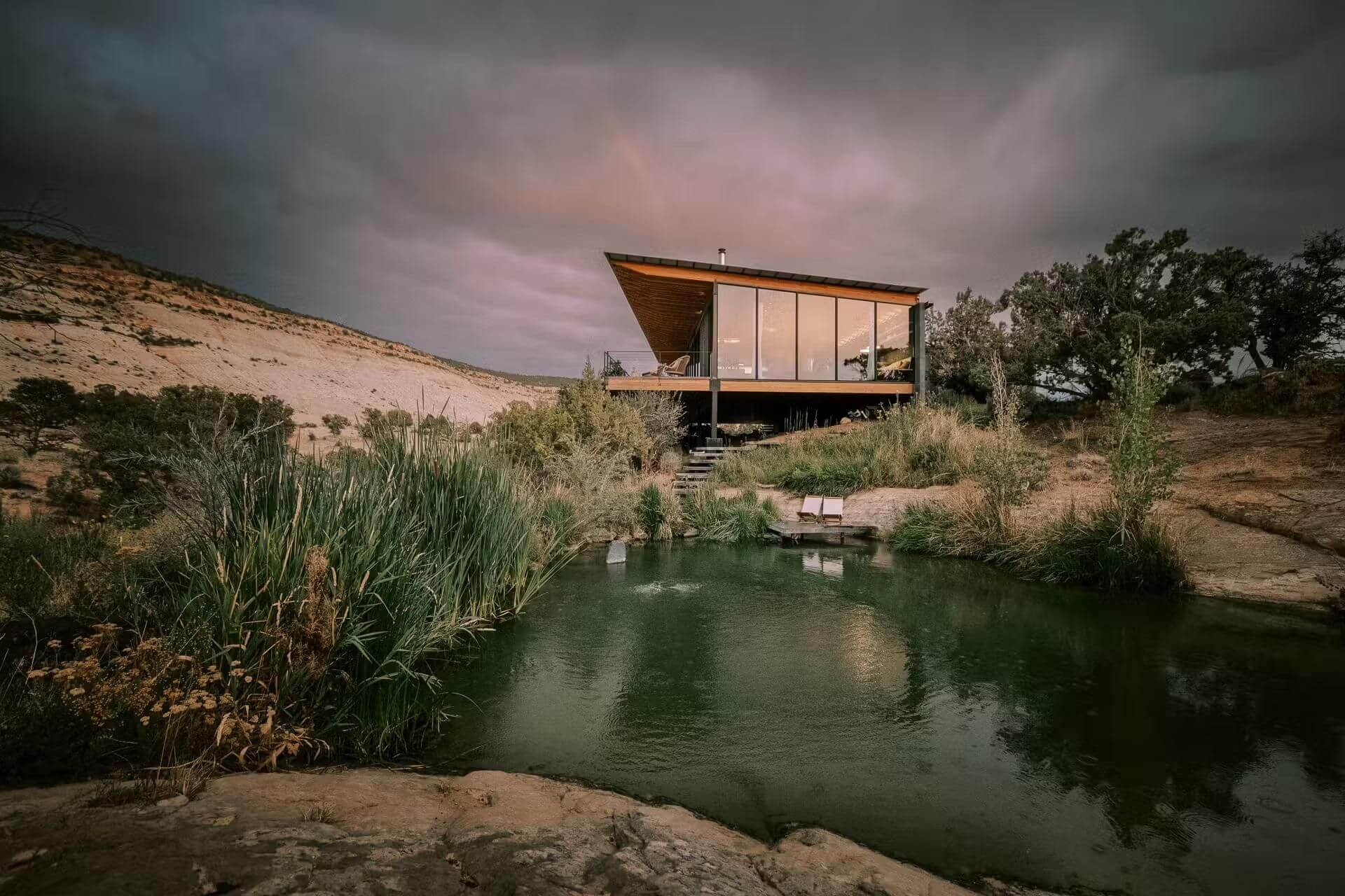 Дом площадью 197 м² расположился в отдалённой высокогорной пустыне западной части штата Юта, у границы национального памятника Гранд-Стейркейс-Эскаланте. Его конструкция, форма и выбор материалов были продиктованы окружающим ландшафтом. Дом представляет собой прямоугольный объем из стали, дуба и стекла, расположившийся среди можжевельника, и низкорослых кустарников. Издали кажется, что он словно парит над землей.