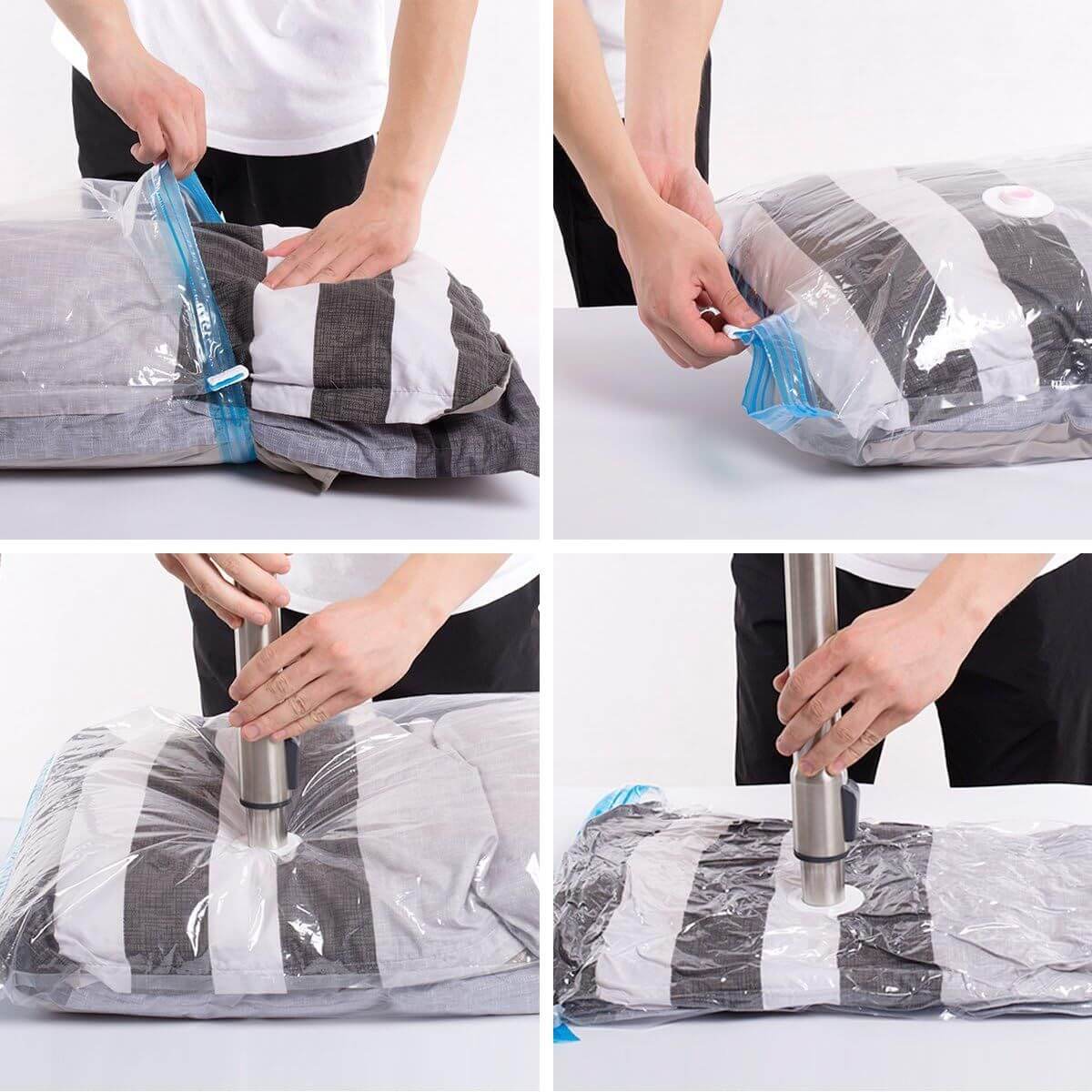 Вакуумные пакеты — идеальное решение для хранения сезонной одежды, постельного белья или подушек. Они экономят пространство, уменьшая объем в 3-4 раза. Пластиковые контейнеры с крышками, которые можно ставить друг на друга, подойдут для безопасного хранения хрупких предметов и документов. Контейнеры легко помещаются под кроватью, на стеллажах или антресолях и не занимают много места.